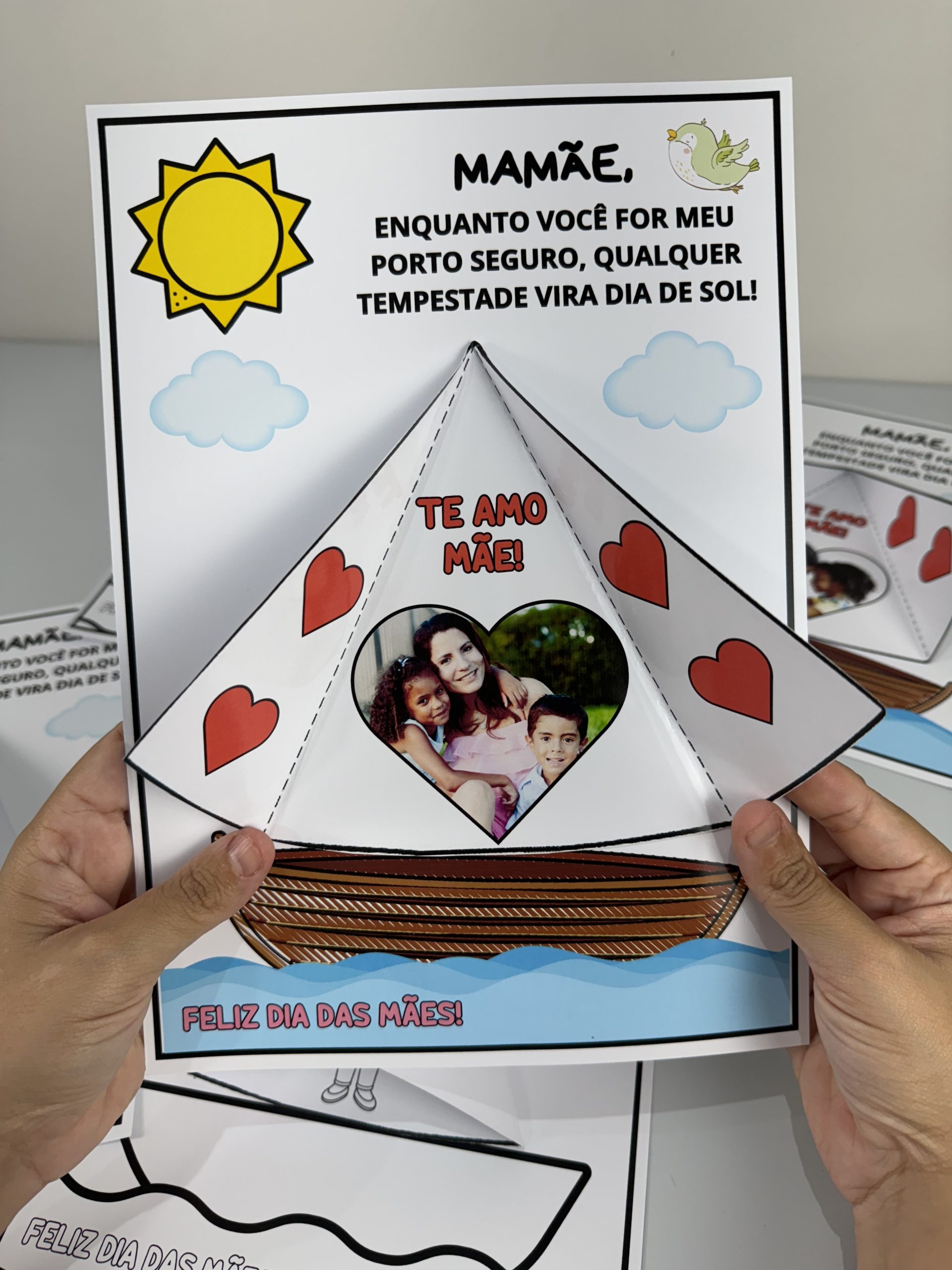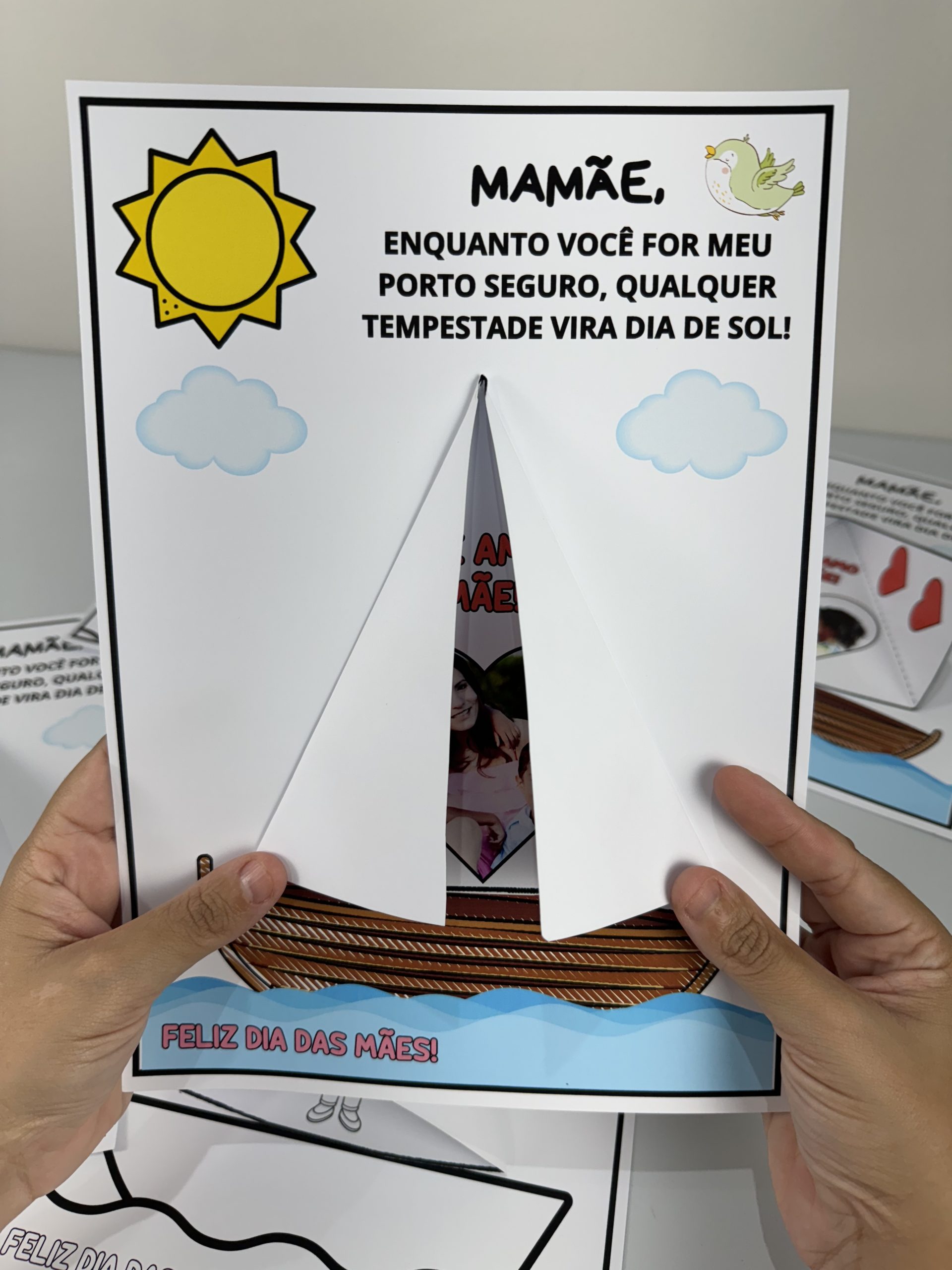 1 versão com a vela do navio editável onde você coloca a foto da mãe e do filho.